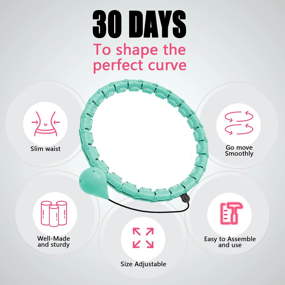 The hoop can be composed of sections, which can increase or decrease the number of slides on the main body to adjust the waist size.